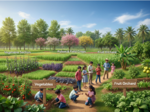 Classrooms open into croplands where students learn farming, sustainability, and environmental stewardship.