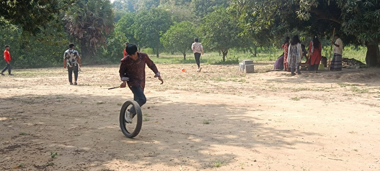 Tyre Race is a classic rural outdoor game where participants roll a tyre forward using a stick, racing against others to reach the finish line without losing control. At DB Nature Hub, this energetic activity brings back the thrill of traditional village street competitions.
